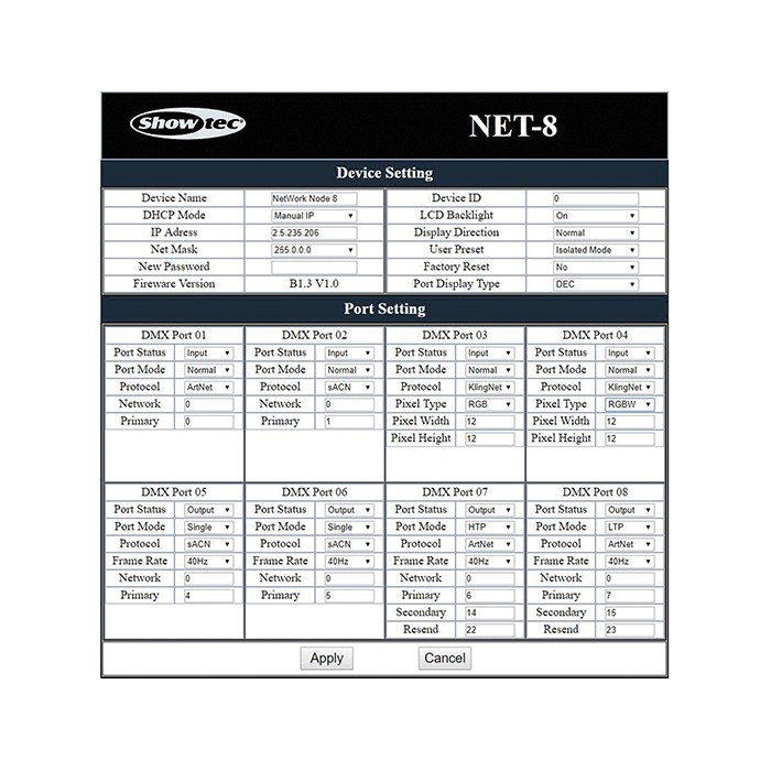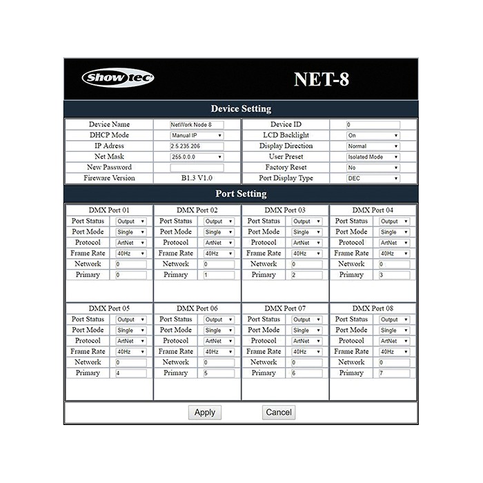 Les nodes NET-8/3 et NET-8/5 de Showtec sont des appareils de routage réseau de pointe qui convertissent les signaux Art-Net en DMX et inversement.